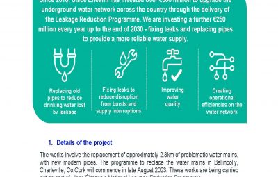 Uisce Éireann’s To Replace 2.8km of Water Mains in Ballincolly, Charleville